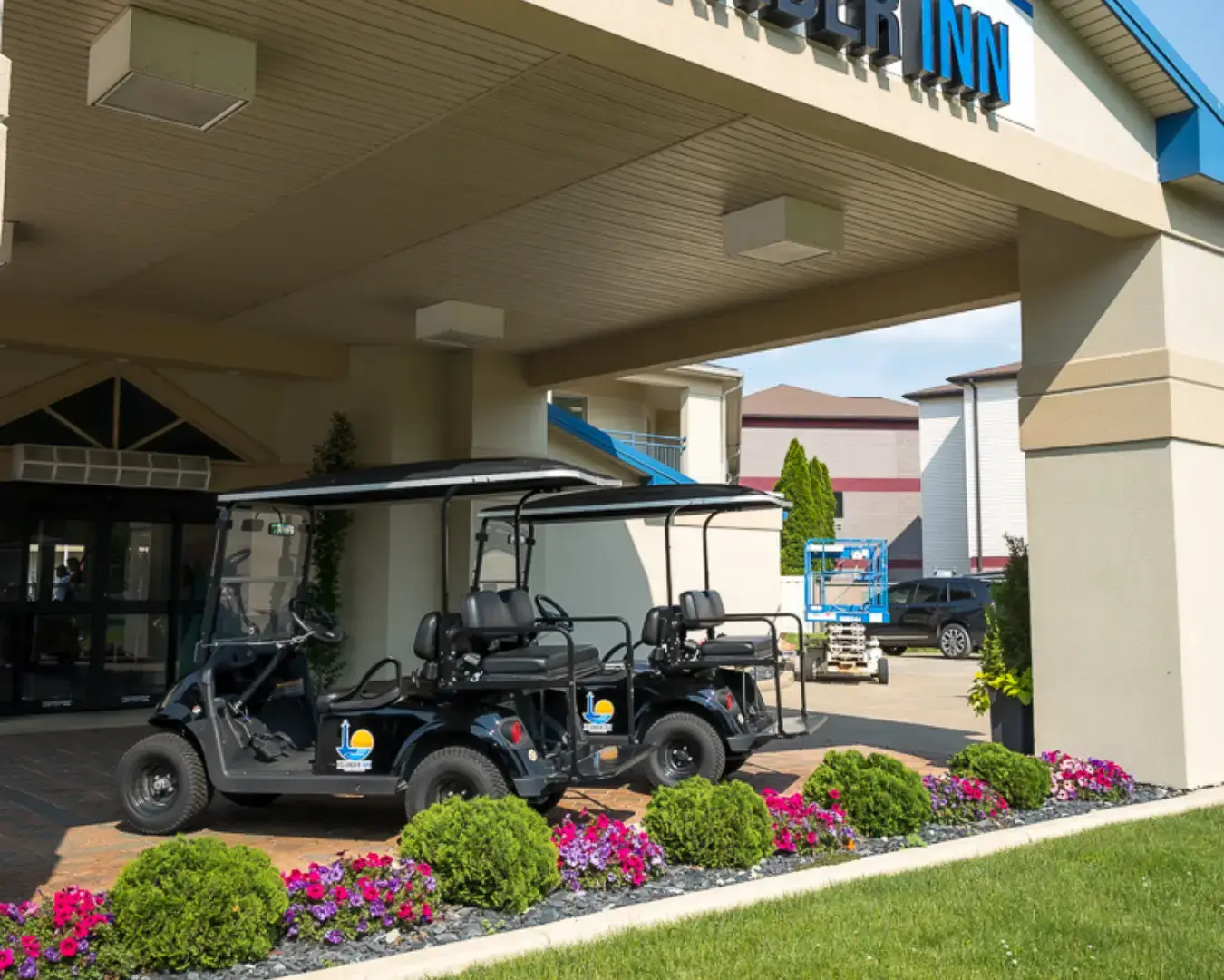 Yes, we offer brand new golf carts for rent at the hotel from 9 am – 9 pm. Book Your Cart Online